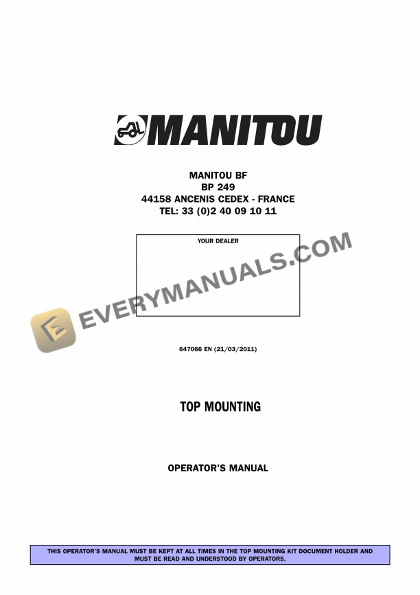 Manitou Top Mounting Operator Manual 647066EN