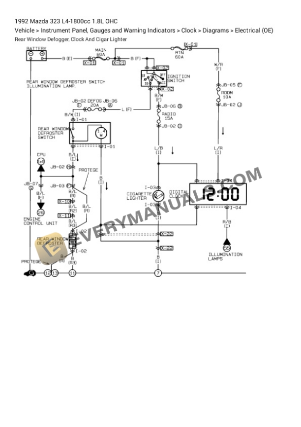 Mazda 323 1992 Electrical Diagrams L4-1800cc 1.8L OHC