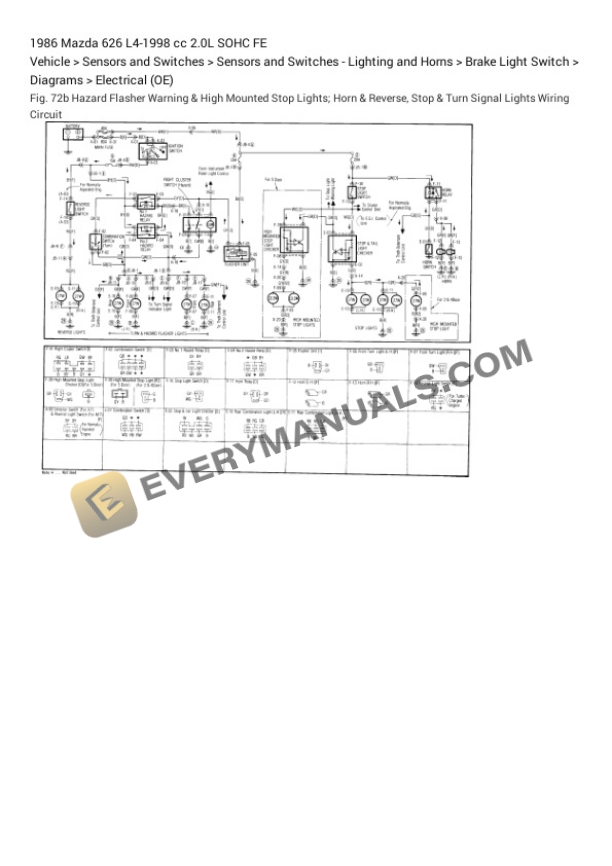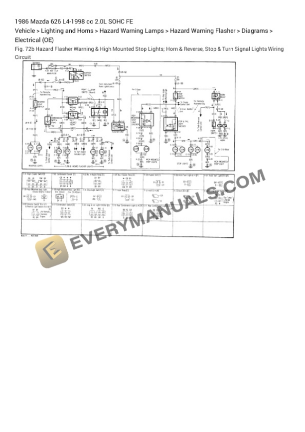 Mazda 626 1986 Electrical Diagrams L4-1998 cc 2.0L SOHC FE