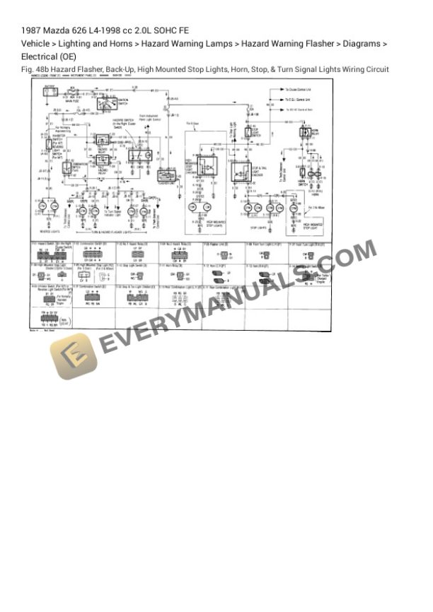 Mazda 626 1987 Electrical Diagrams L4-1998 cc 2.0L SOHC FE