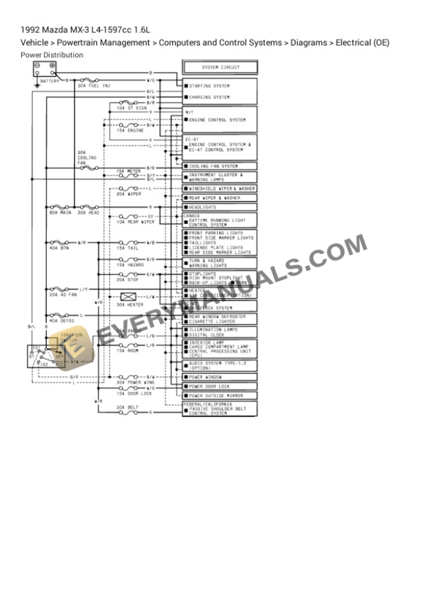 Mazda MX-3 1992 Electrical Diagrams L4-1597cc 1.6L