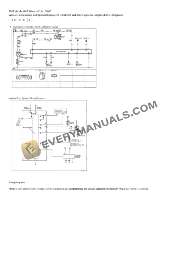 Mazda MX-5 Miata 2002 Electrical Diagrams L4-1.8L DOHC