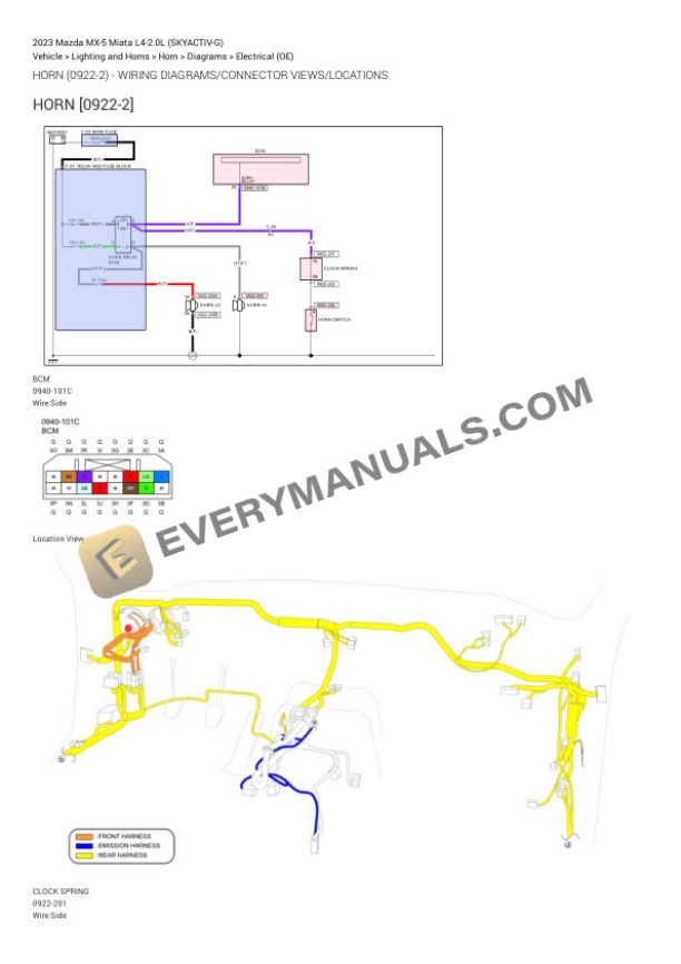 - 84. Horn (0922-2) – Wiring Diagrams_Connector Views_Locations