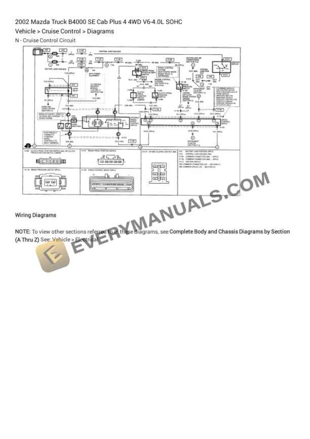 Mazda Truck B4000 SE Cab Plus 4 4WD 2002 Electrical Diagrams V6-4.0L SOHC