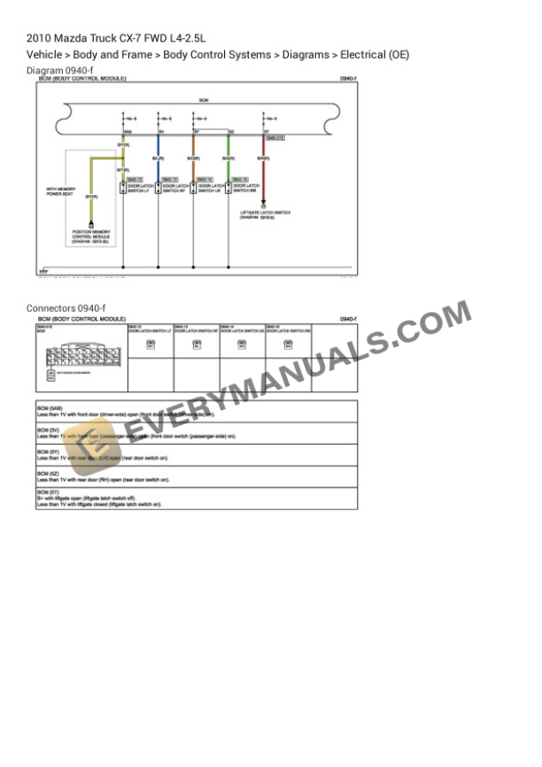 Mazda Truck CX-7 FWD 2010 Electrical Diagrams L4-2.5L
