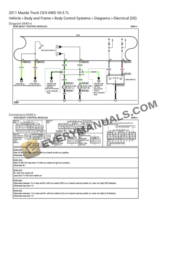 Mazda Truck CX-9 AWD 2011 Electrical Diagrams V6-3.7L