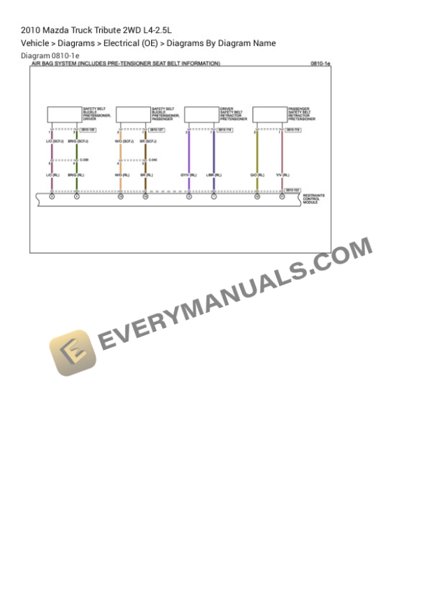 Mazda Truck Tribute 2WD 2010 Electrical Diagrams L4-2.5L