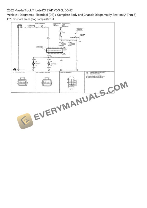 Mazda Truck Tribute DX 2WD 2002 Electrical Diagrams V6-3.0L DOHC