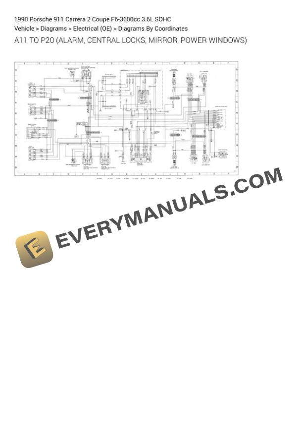 Porsche 911 Carrera 2 Coupe 1990 Electrical Diagrams F6-3600cc 3.6L SOHC