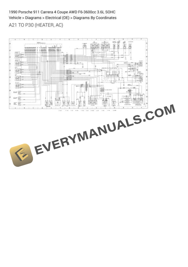 Porsche 911 Carrera 4 Coupe AWD 1990 Electrical Diagrams F6-3600cc 3.6L SOHC