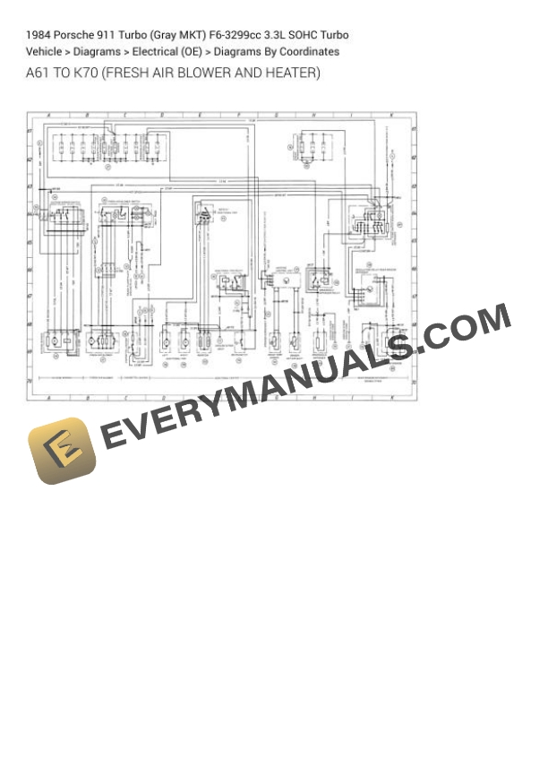 Porsche 911 Turbo (Gray MKT) 1984 Electrical Diagrams F6-3299cc 3.3L SOHC Turbo