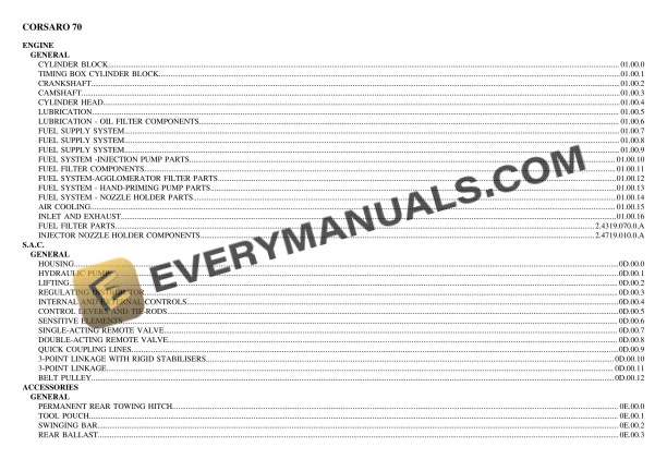 Same CORSARO 70 Tractor Parts Catalog PDF