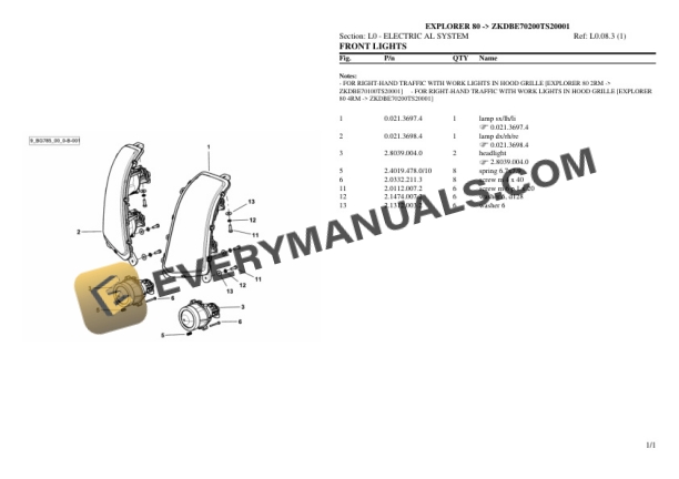Same EXPLORER 80 (ZKDBE70200TS20001) Tractor Parts Catalog PDF