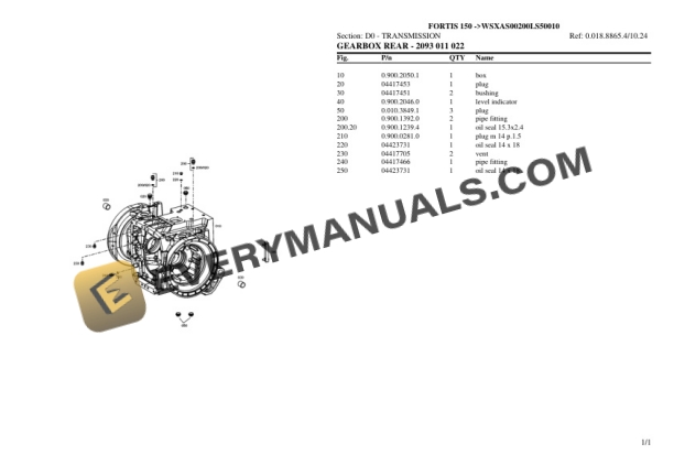 Same FORTIS 150 (WSXAS00200LS50010) Tractor Parts Catalog PDF