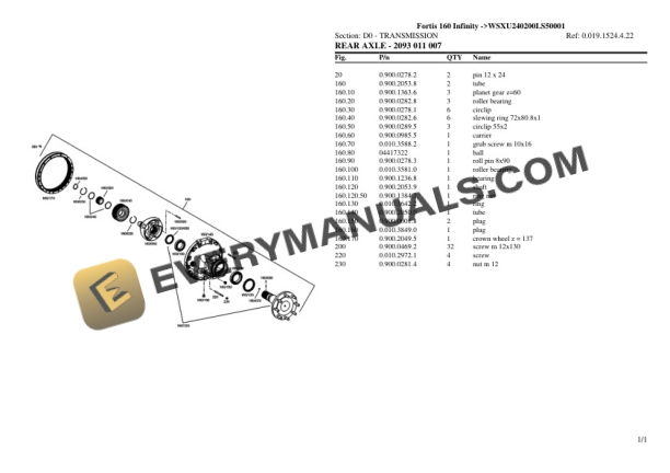 Same Fortis 160 Infinity (WSXU240200LS50001) Tractor Parts Catalog PDF