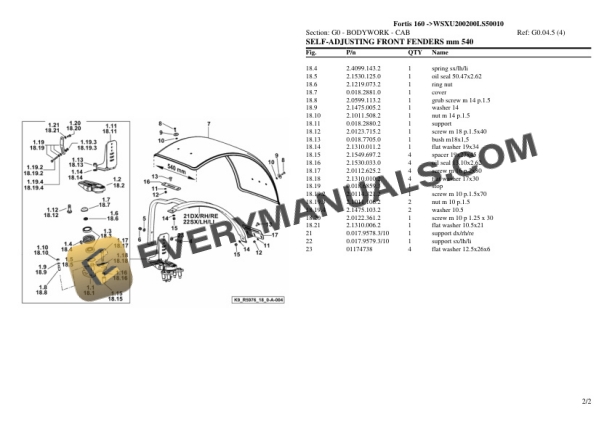 Same Fortis 160 (WSXU200200LS50010) Tractor Parts Catalog PDF