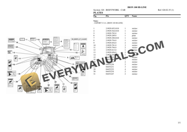 Same IRON 100 HI-LINE Tractor Parts Catalog PDF