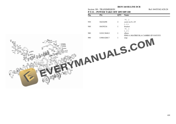 Same IRON 160 HI-LINE DCR Tractor Parts Catalog PDF