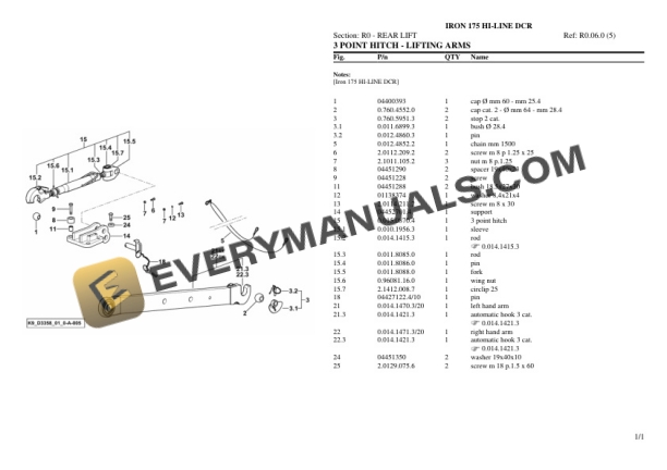 Same IRON 175 HI-LINE DCR Tractor Parts Catalog PDF