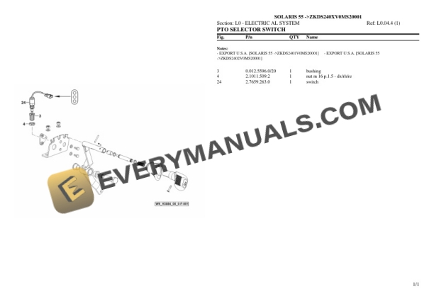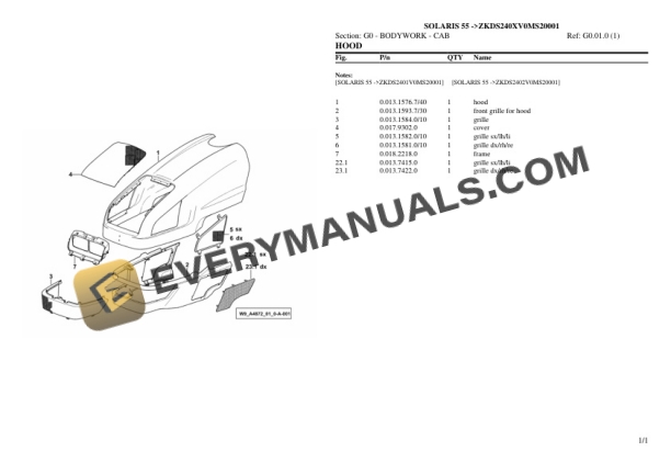Same OLARIS 55 (ZKDS240XV0MS20001) Tractor Parts Catalog PDF