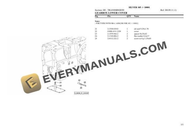 Same SILVER 105 (10001) Tractor Parts Catalog PDF