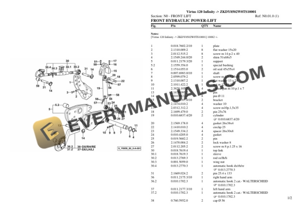 Same Virtus 120 Infinity (ZKDY8502W0TS10001) Tractor Parts Catalog PDF