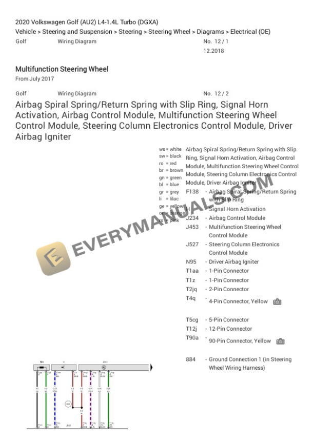Volkswagen Golf (AU2) 2020 Electrical Diagrams L4-1.4L Turbo (DGXA)