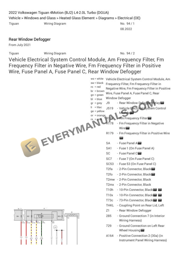 - 9. Defogger – Rear Defogger Circuit (W- Wiper Park Position Heater)